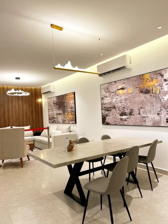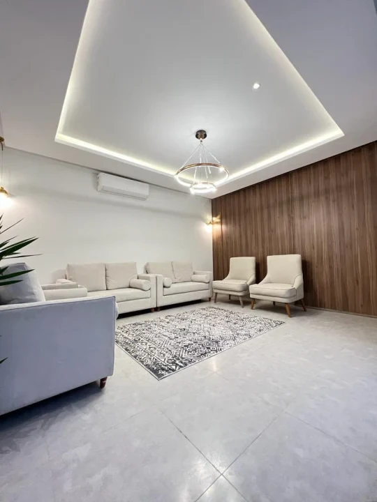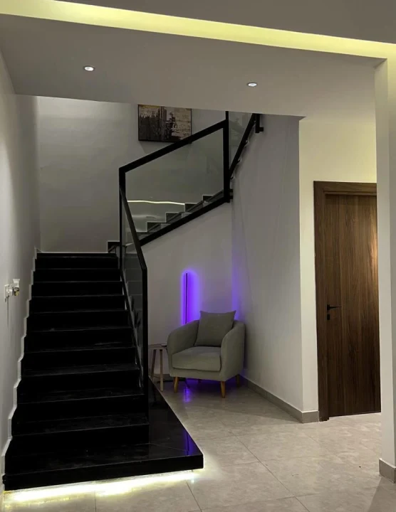 فيلا ذكية (دورين ونصف) مساحة البناء 295م والأرض 200م. أرضي ضيافة كامل بحوش خاص وجلسات وحدائق، مجلس وصالات ومطبخ وخدمات و3 دورات مياه. أول 4 غرف و3 حمامات. علوي جلسة بانورامية. تأسيس مصعد وإمكانية التوسعة